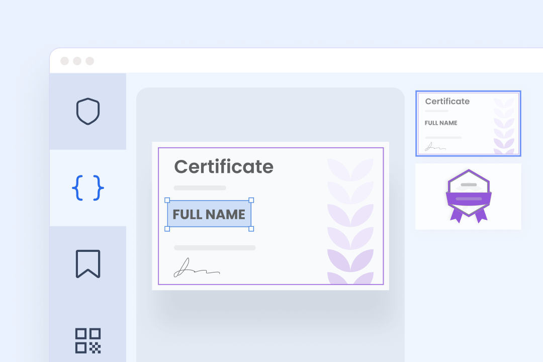 Certifier makes it simple to issue personalized badges and certificates in bulk. Whether you use a spreadsheet, Google Sheets or connect other tools, dynamic attributes automatically fill each credential with recipient data, turning one design into thousands of ready-to-send credentials.